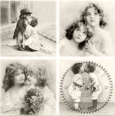 Guardanapo Vintage GV36.007 A imagem representa uma face do guardanapo, em que estão presentes 4 figuras de meninos e meninas Tamanho: 33x33