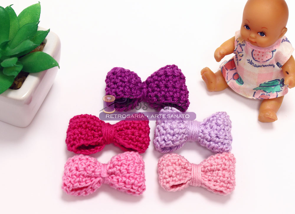 Laço em crochet I (+/- 4,5cms) - tons rosa/lilás