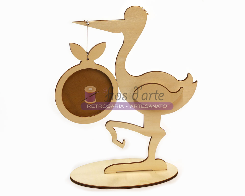 Moldura Cegonha com base Sem tratamento Tamanho: 38x23cms Material: madeira