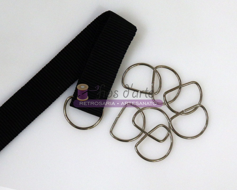 Passador meia lua Tamanho: exterior 40mm (para fita de 35mm) Cor: Níquel e ouro velho