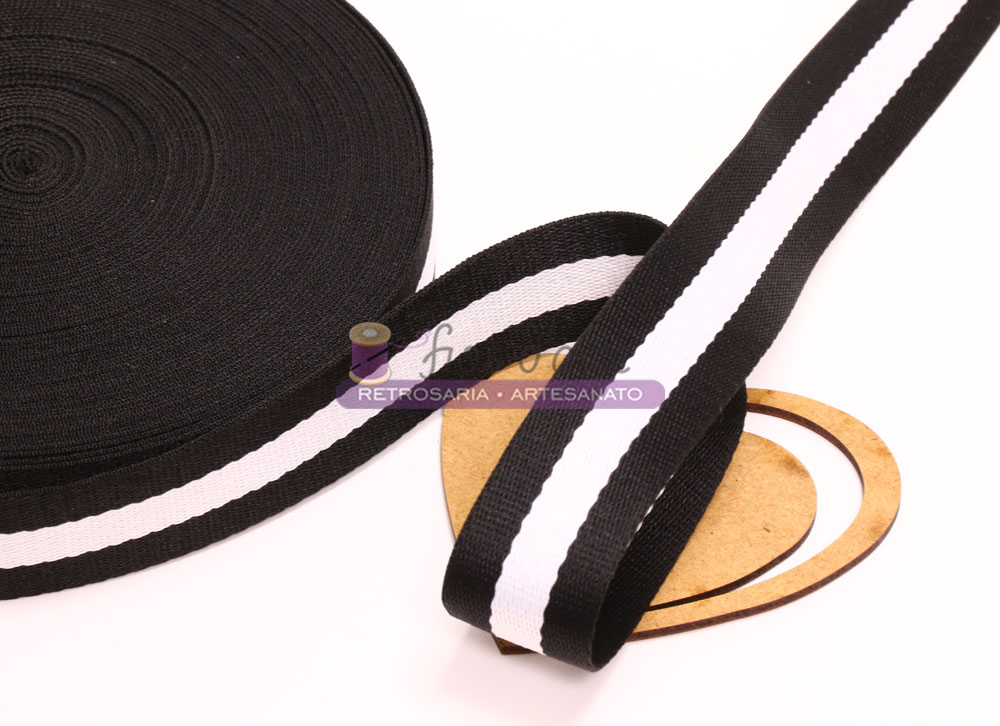 Precinta Composição: 100% poliester Largura: 30mm Cor: preto e branco