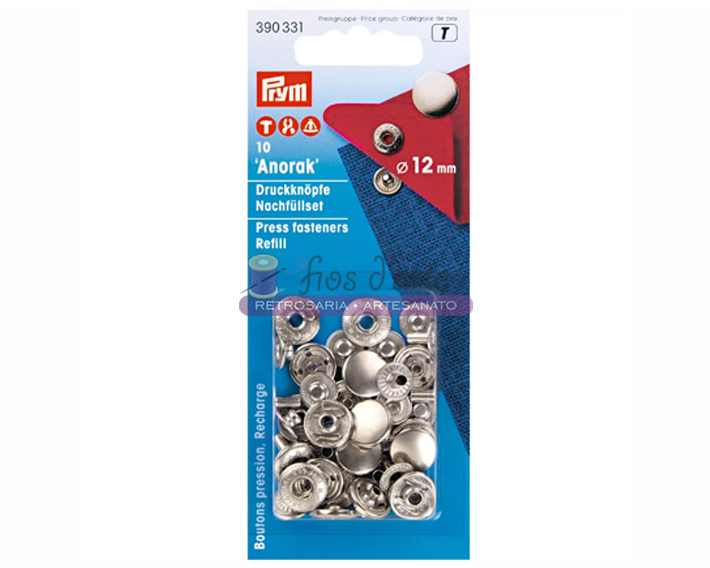 Conjunto de 10 molas de pressão, capa prateada Tamanho: 12mm Marca: Prym