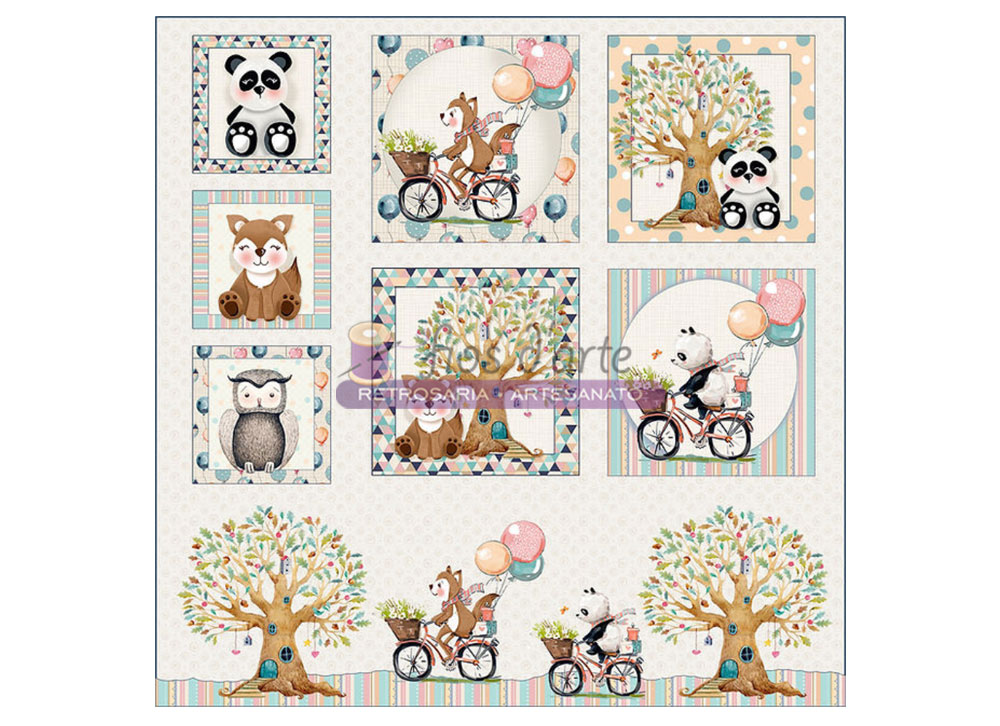 Painel Animais na Floresta (Fuxicos e Fricotes) - 48x48cms