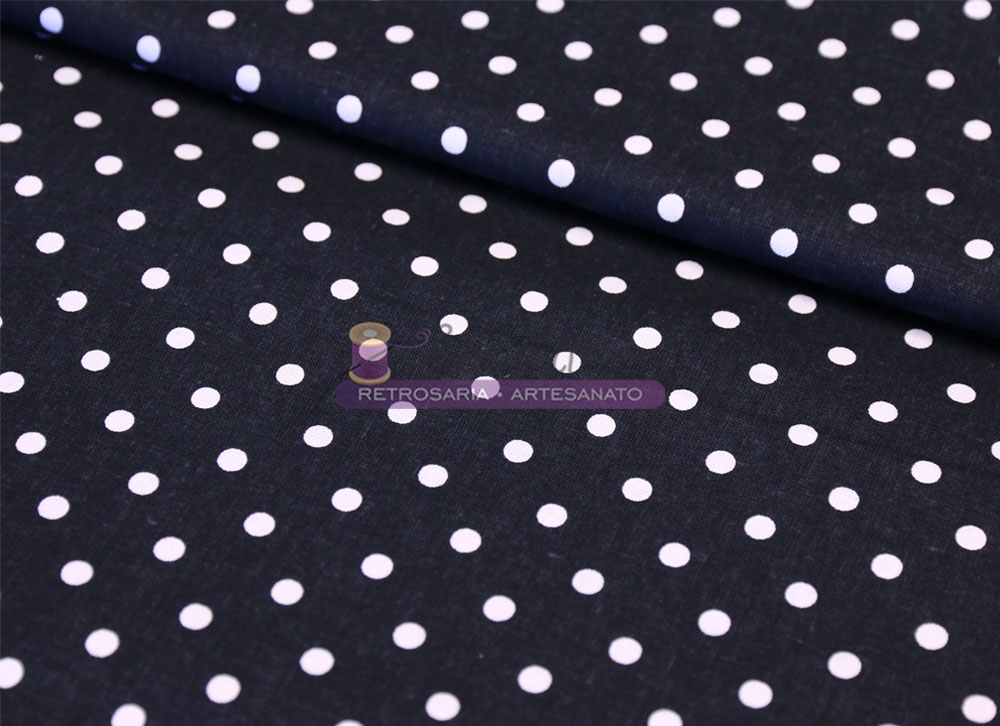 Tecido Bolas Composição: 100% algodão Largura: +/-150cms Cor: fundo preto com bolas brancas (bolas têm +/- 0,6cms de diâmetro)