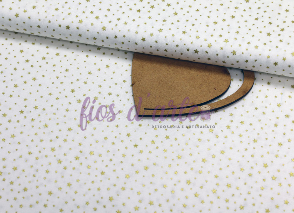 Cor: fundo branco com estrelinhas pequeninas douradas