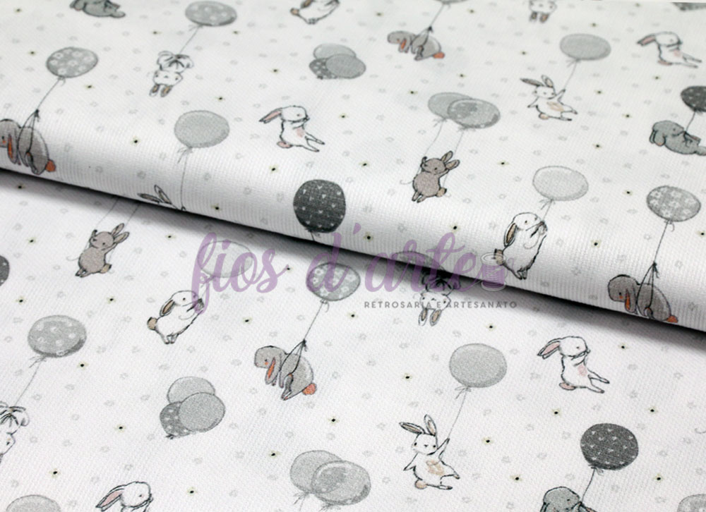 Tecido digital Coelhinho no balão - cinzento (fustão)