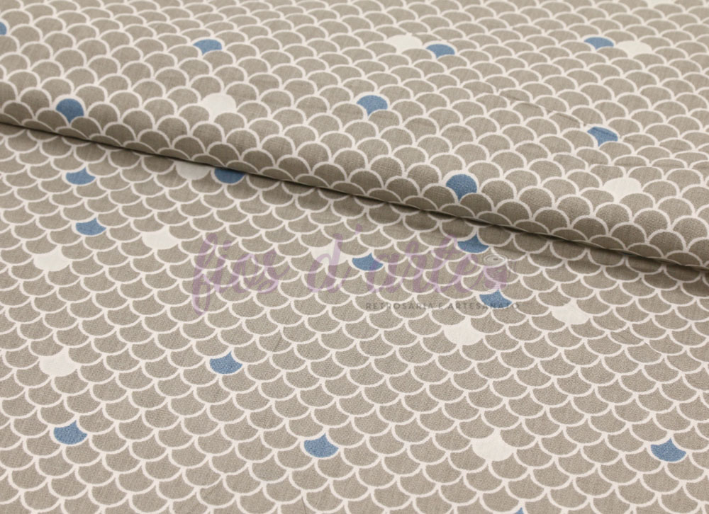 Cor: fundo cinzento com apontamentos brancos e azuis