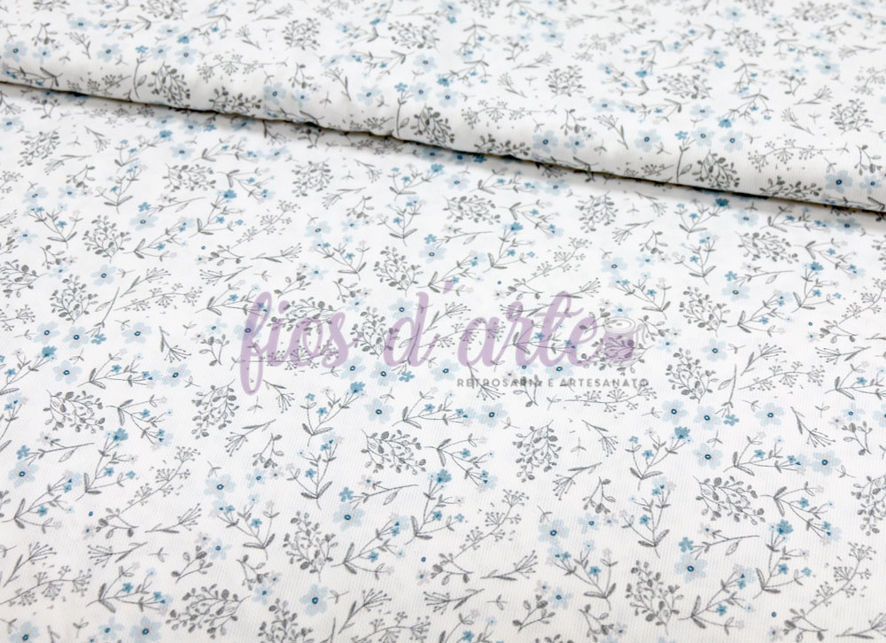 Tecido Florzinhas - azul (fustão)