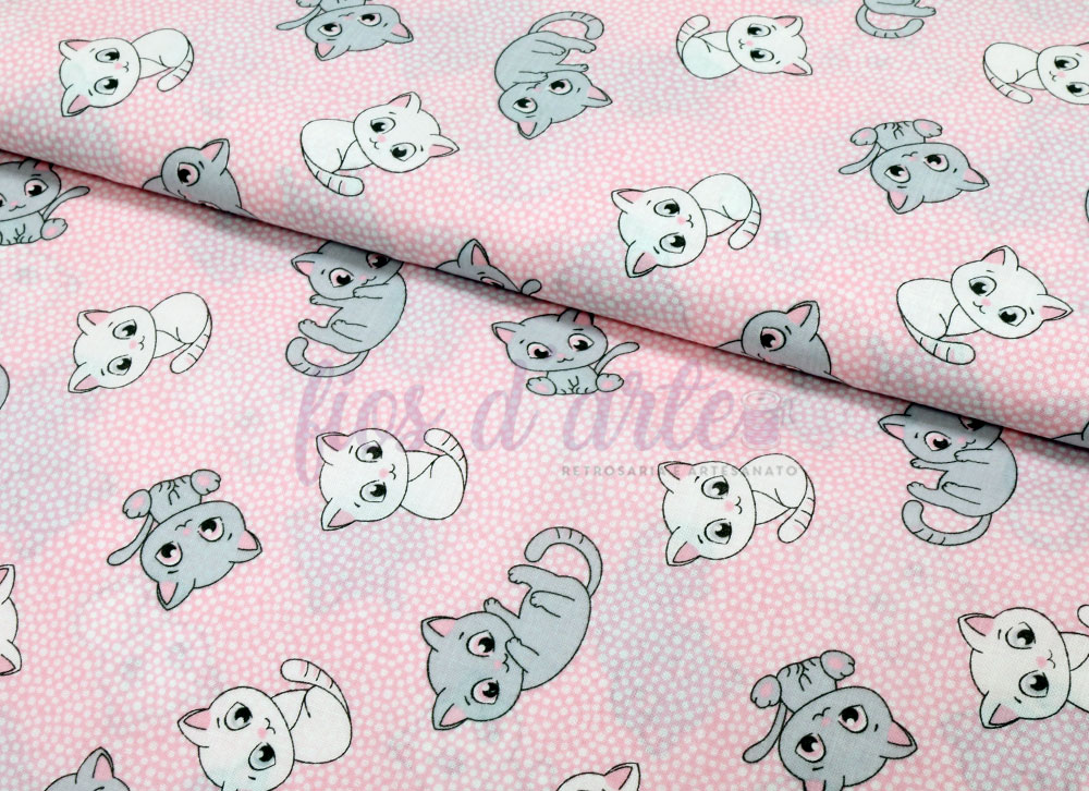 Tecido Gatinhos rosa