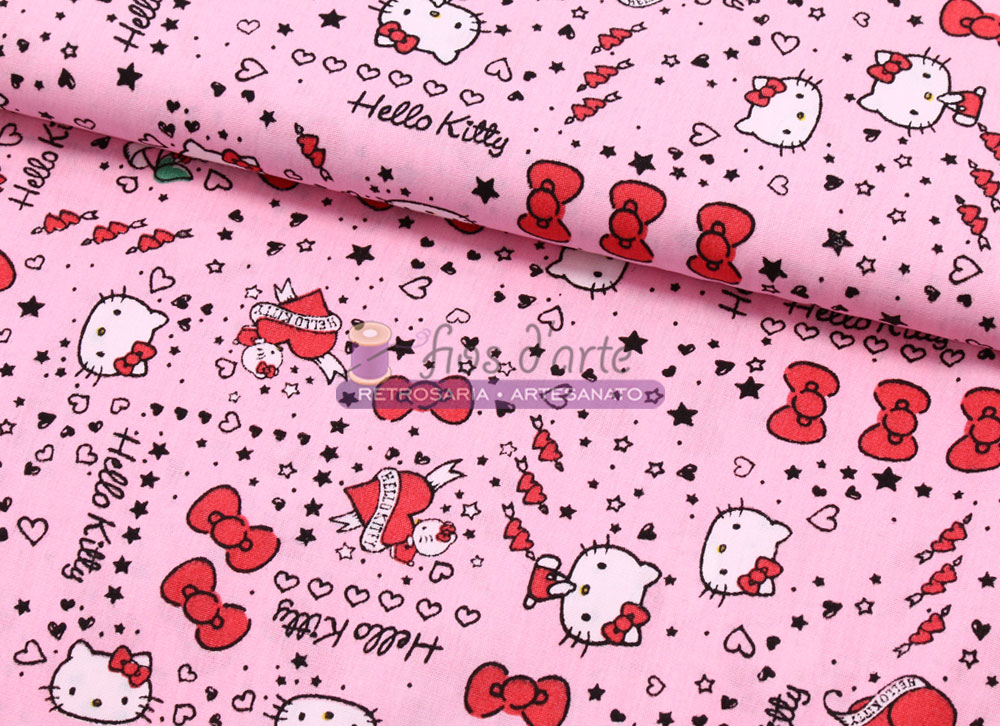 Tecido Hello Kitty (Sanrio) - fundo rosa