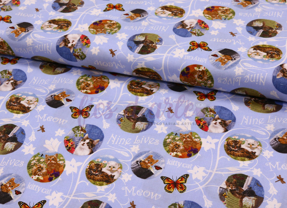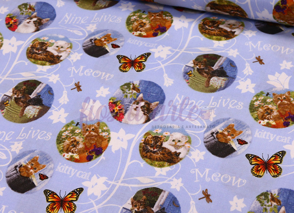 Tecido Kittens in the Garden - Gatinho em círculos