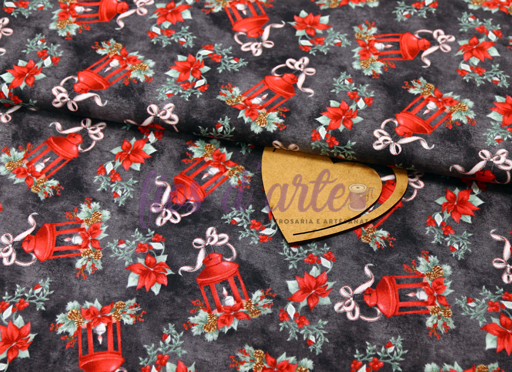 Tecido Lamparina e Poinsetias Largura: 110cms Composição: 100% algodão