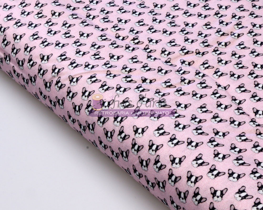 Tecido Mini Bulldogs Rosa Largura: 150cms Composição: 100% algodão Tamanho do bulldog: +/- 1x1cms