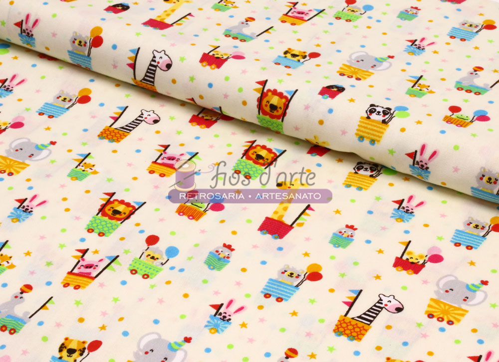 Tecido Mini Zoo em Festa - creme Largura: 150cms Composição: 100% algodão