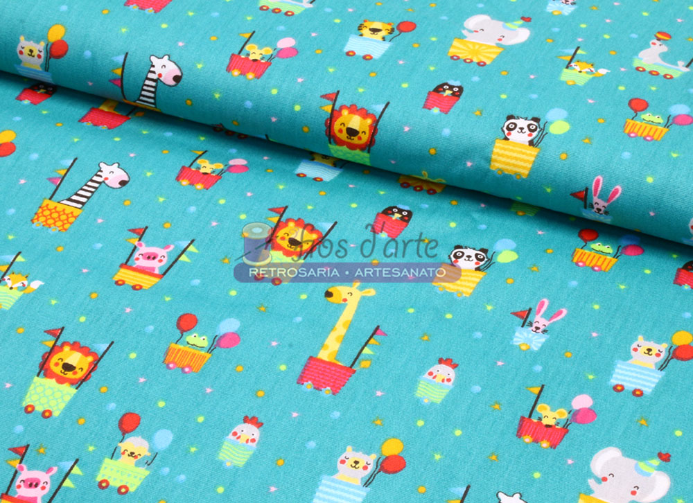 Tecido Mini Zoo em Festa - verde Largura: 150cms Composição: 100% algodão