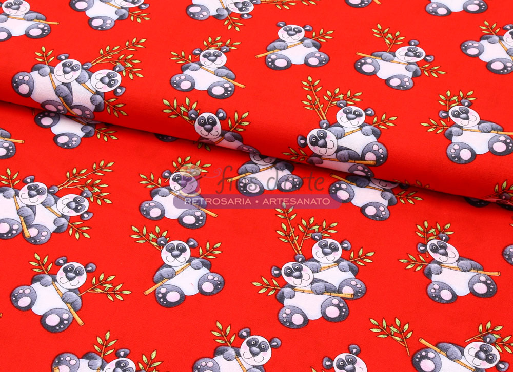 Tecido Noah's Story Pandas vermelho Composição: 100% algodão Largura: 110cms