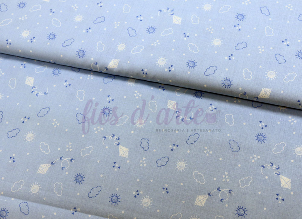 Tecido Nuvens e Papagaios - azul