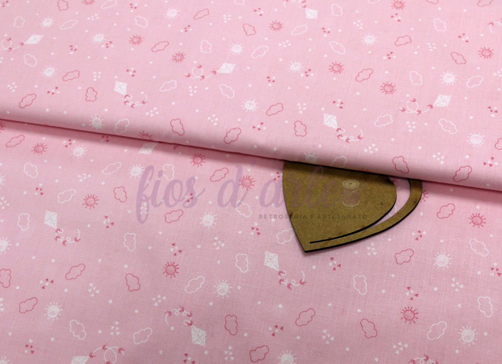 Tecido Nuvens e Papagaios - rosa