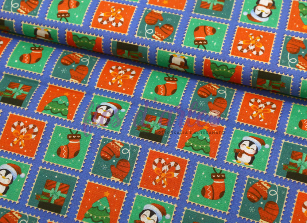 Tecido Selos de Natal Composição: 100% algodão Largura: 150cms
