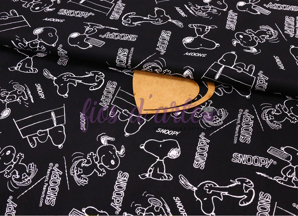 Tecido Snoopy (Peanuts) - preto