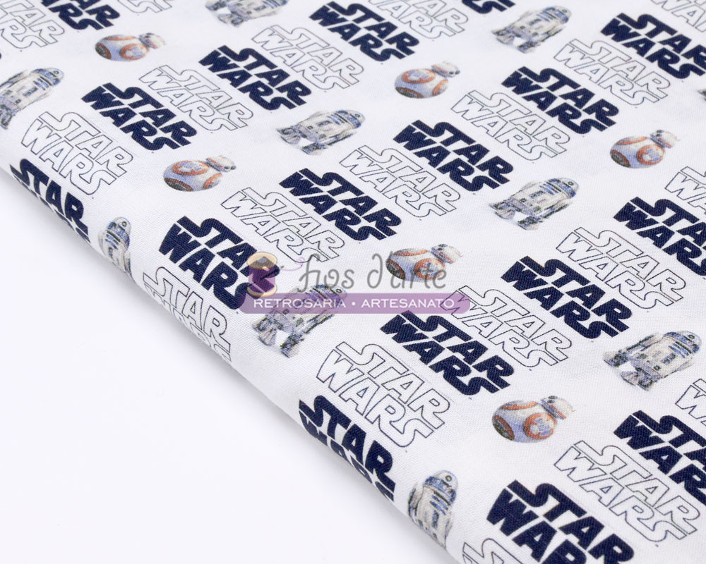 Tecido Star Wars Composição: 100% algodão Largura: 150cms Tamanho do logo Star Wars: 3x1,5cms