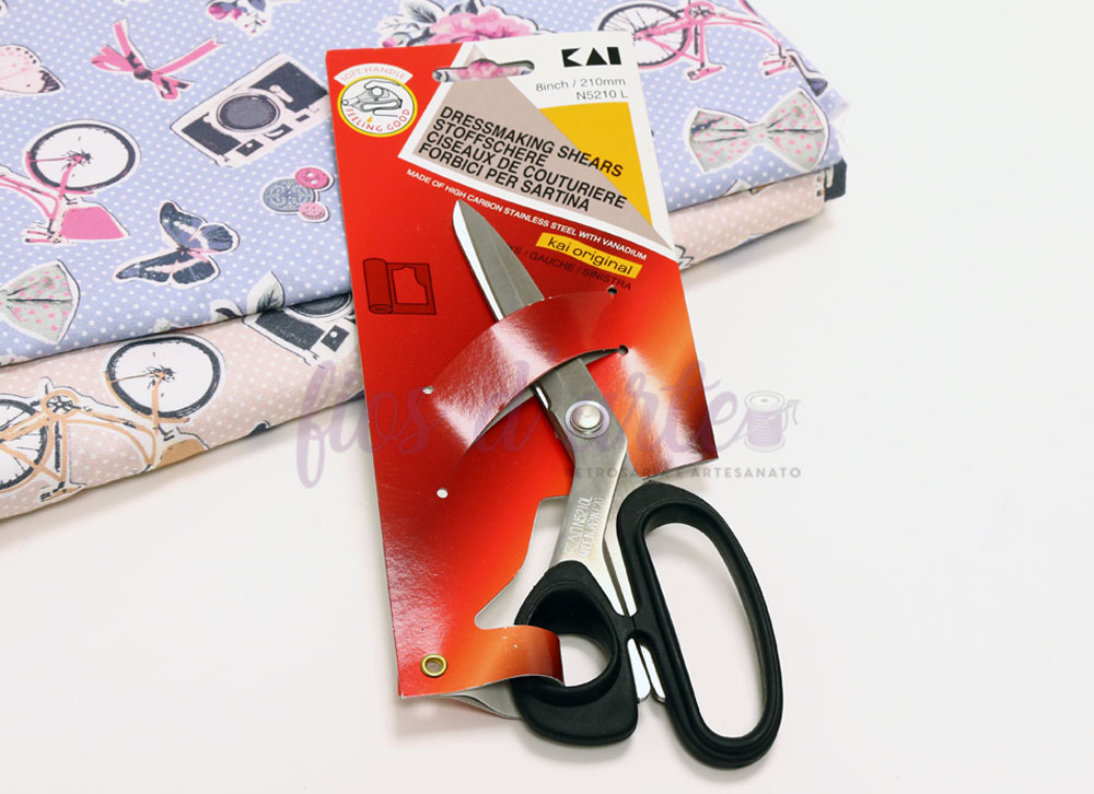 Tesoura para modista para esquerdinos (Kai) - 21cms Tesoura de ótima qualidade com lâmina em titânio e pega suave.