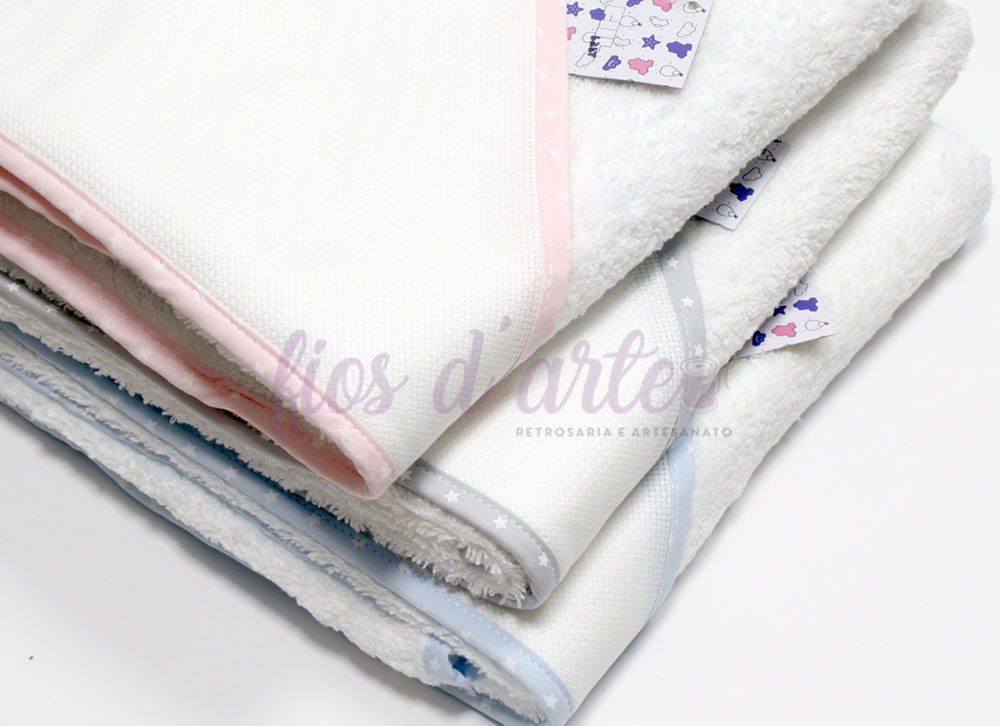 Toalha de banho Estrelinhas para bebé com capuz para bordar ponto cruz (80x80cms)